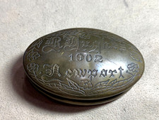 BRASS ANTIQUE MINERS TOBACCO TIN 1902 R. Hughes Newport
