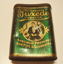 Antique Pattersons Tuxedo Pipe & Cigarette Tobacco Advertising Curved Pocket Tin