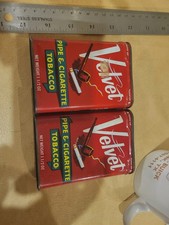 Vintage Velvet Pipe And Tobacco Tins Pair Of Tins Cigarette Antique Cans