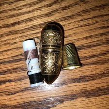 🚨ANTIQUE VICTORIAN THIMBLE EGG CASE HOLDER + THIMBLE ETUI CHATELAINE EMBOSSED