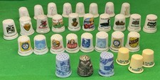 Lot of 33 Vintage Porcelain Thimbles – Flowers, Ads, States, Collectibles