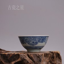 Ming Blue and White Double Dragon Cup Antique Porcelain