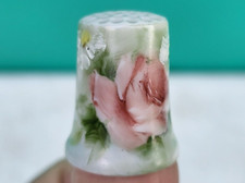 Antique Porcelain Thimble Hand Painted Roses JUNE MORGAN Sewing