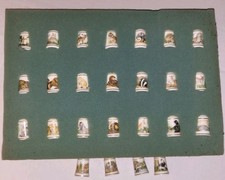 Vintage Set of 24 Disney Porcerlain Thimbles w/ Wooden Display Shelf