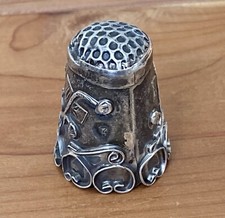 Antique Sterling Silver Thimble with farmhouse landscape decoration 6 grams
