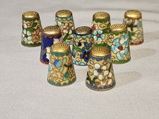 Vintage Lot of 9 Floral Brass Cloisonne Enamel Thimbles