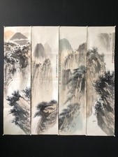 Old Chinese Antique Four Painting Scrolls Landscape by Zhang Daqian 张大千 福禄寿喜四条屏