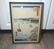 Antique Takahashi Shōtei Beach By Moonlight Woodblock Print