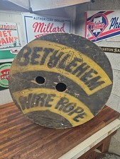 Bethlehem Wire Rope Wooden Spool 24" x 10 Antique Vintage Wood Table Empty