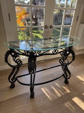 Antique Half Round Metal Glass Console Table Black Scrollwork Entryway Indoor