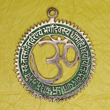 Om with Gayatri Mantra Wall Hanging Mask Metal Home Office Wall Decor Figurine