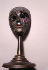 Antique Mardi Gras Mask Metal Decorative Sculpture 2x4 inches
