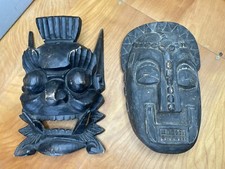 Wall Wooden Art Sculpture Masks - Vintage set of 2
