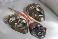 Vintage Solid Brass Comedy & Tragedy Masks 8" Theater Drama Wall Decor Set India
