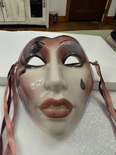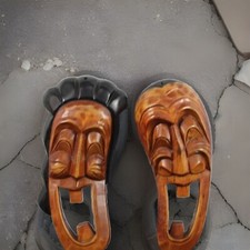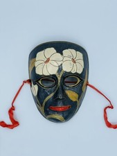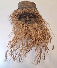 hand carved vintage wooden mask face drama antique tiki bar decoration cool old