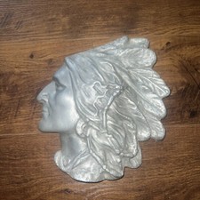 Vintage Cast Aluminum Native American Chief Wall Plaque 5” x 4” Rustic Decor