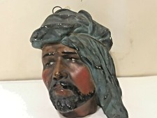 Vtg Antique Molded Hand Painted Pottery Man w Turban Beard Face Wall Hanging Art