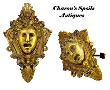 Antique Gilt Bronze Ormolu Tragic Female Faces Wall Furniture Decorative Mounts