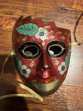Brass Face Vintage Wall Hanging Painted 2pc Mask Antique Wall Decor Collectible