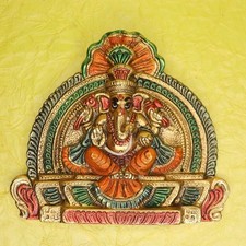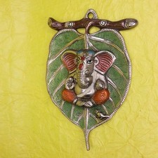 Ganesh on Leaf Wall Hanging Mask Metal Wall Decor Figurine Home Office Decor