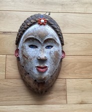Tribal African Wooden Wall Mounted Decorative Mask Antique Brown White