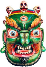 QT Shopping Bhairab Wooden Wall Sculpture Large 16 IN Green Shiva Mahakala
