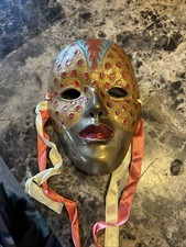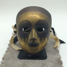 Antique Brass Enameled Mardi Gras Mask Decorative Sculpture 2x4 inches