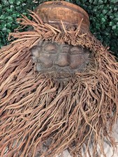 Vintage Island Tiki Hand Carved Bamboo Root Face Carving Beard Man 21 x 18"