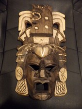 wood mask,mexican,aztec,mayan,vintage,antique,home,office,jaguar
