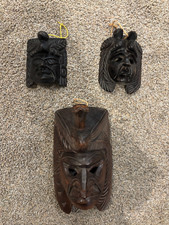 Vintage Wooden Handcarved Masks Faces Wall Hanger Folk Art