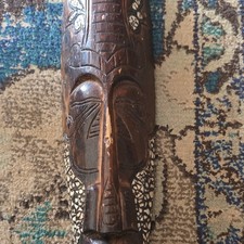VTG Mask Wood Carving Wooden Craft Wall Decor Tropical Tribal 22 X 5 UNMARKED