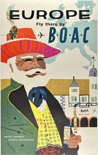 c.1960s Fly BOAC To Britain and Europe Vintage Poster British Overseas Airways