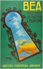 Original Vintage Poster BEA TAKES YOU THERE BRITISH EUROPEAN AIRWAYS Airline OL