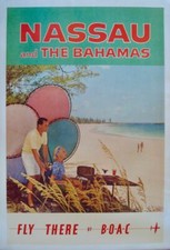 BOAC NASSAU AND BAHAMAS Vintage 1958 Travel Airlines poster 28x42 RARE LINEN NM