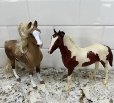 Set Of 2 Vintage Breyer Horses Pinto & Tan With Hair Toy Figurines