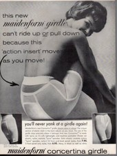 Vintage advertising print ad FASHION Maidenform girdle can't ride up insert 1963