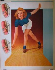 Bowling Pinup Girl 1947 Ice Cream Advertising Poster, Giant 35x45, Albert Fisher