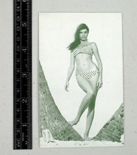 Vintage Mutoscope pinup arcade card sexy brunette in a striped bikini