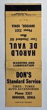 Vintage Matchbook Cover Don’s Standard Service Harold De Vaul Inwood, Iowa #289