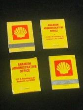 Lot of 4 Vintage Shell Oil Advertising Matchbooks Anaheim Administrative Office