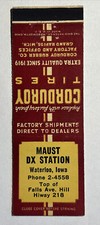 Vintage Matchbook Cover Maust D-X Station Corduroy Tires Waterloo, Iowa #298