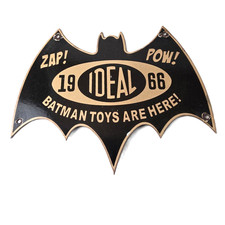 VINTAGE 11x8 in IDEAL BATMAN TOYS ARE HERE ADV SIGN HEAVY METAL PORCELAIN - Z541