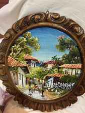Vintage Honduras Hand Painted Wooden Carved Plate Folk Art Mid Century Modern
