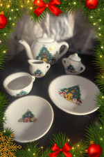 Vintage Mid-Century Christmas Mini Tea Set (17-Piece) New in Original Box