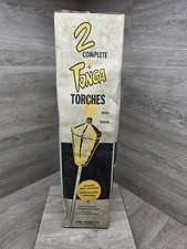 2 New Vtg Gold Tone Tiki Tonga Torches W 6' Poles NOS Mid Century Free Shipping!