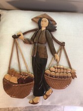 Mid Century Handcarved Wood Wall Plaque Philippine Folkart Woman in Head Scarf