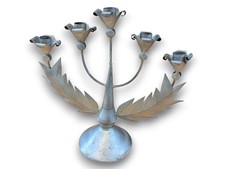 Vintage Mexican Punched Tin Candelabra Candle Holder Mid Century Modern MCM 14''