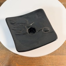 Vintage Japanese Ikebana Uokkaichi Black Vase pottery mid century modernist