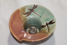 Vintage Mid Century Ikebana Vase Pottery Japan Modernist Dragonfly Open Mouth 6"