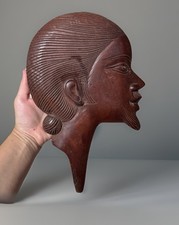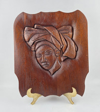 Vintage African Hand Carved Wood Wall Plaque Tribal Profile Mid Century Boho Art